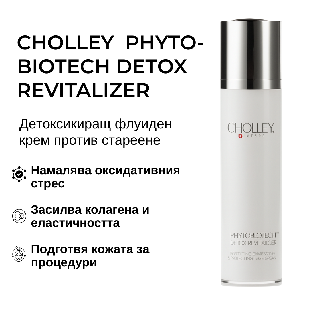 [/vc_toggle][/vc_column][vc_column width=”1/3″][vc_toggle title=”Препоръчителна употреба” open=”true”]За най-добри резултати, сутрин и вечер, след пълно почистване, нанесете CHOLLEY PHYTOBIOTECH Detox Revitalizer върху лицето, шията и деколтето. Използвайте лек масаж, за да помогнете за по-доброто усвояване на продукта. През деня, за UV защита, продължете с нанасянето на CHOLLEY Alpine Solar Defense – SPF 50 като слънцезащитен крем.