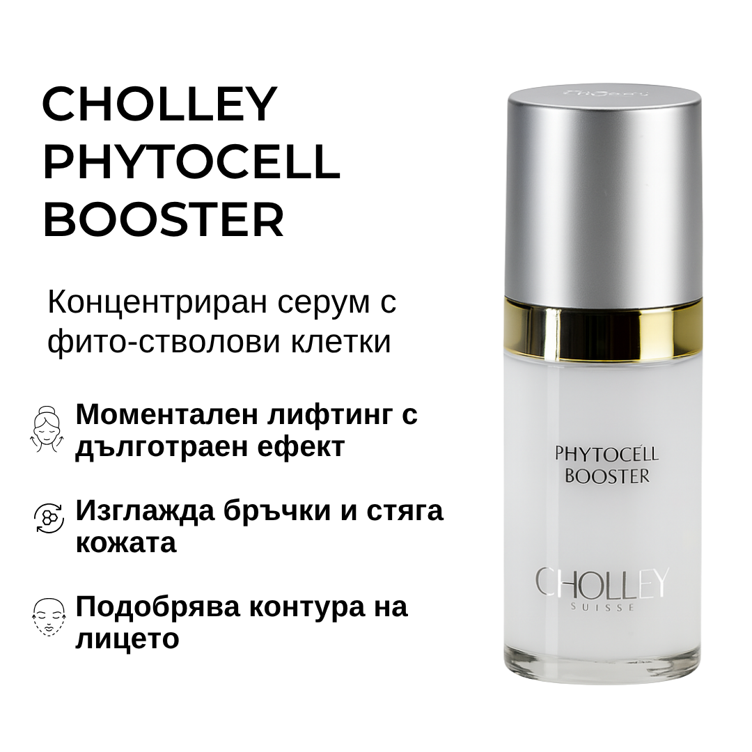 [/vc_toggle][/vc_column][vc_column width=”1/3″][vc_toggle title=”Препоръчителна употреба” open=”true”]За най-добри резултати, сутрин и вечер, след цялостно почистване на лицето, шията и деколтето, поставете няколко капки CHOLLEY Phytocell Booster в дланта на ръцете си.